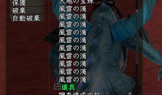 〝風雷の滴〟から出る宝玉は4種類。お目当ては〝紡属の宝玉〟と〝断属の宝玉〟なのでまぁ5割の確率。