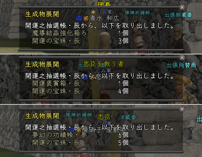 | 1週 | 強化源箱・辰 | 開運褒賞箱・辰 | 装飾石箱・参 | 1/1 |