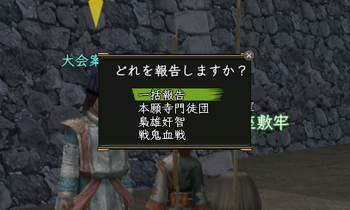 具体的には「本願寺→黒田→島津→報告」。つまり、同じ依頼を連続してこなすと毎回報告する必要がありますが、異なる依頼を3回こなして報告を1回にすることで、報告する時間を短縮出来るのではないか?という試みです。