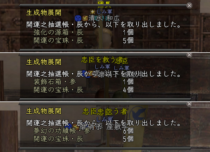 | 1週 | 強化源箱・辰 | 開運褒賞箱・辰 | 装飾石箱・参 | 1/1 |
