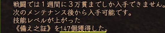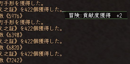 数値的には忘却とほぼ同じですが、待ち時間が一切なく、連続して戦闘出来るのは大きいですねぇ。冒険の貢献度も貯まるし(普段、倉庫キャラは生産の貢献度しか貯めてないので)。