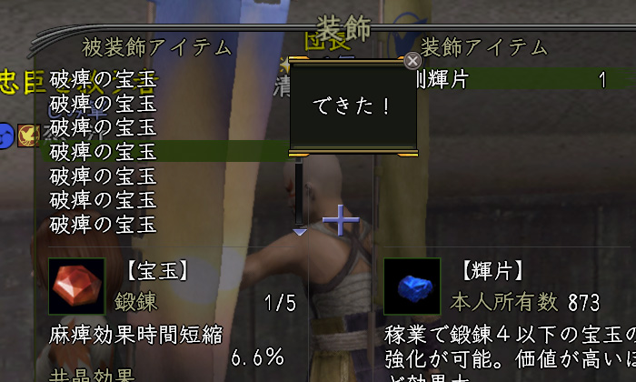 とはいうものの、各上昇値をメモしながらのノックですので少々時間がかかりすぎまして、結局のところ、宝玉は50個しか処理出来ませんでした。