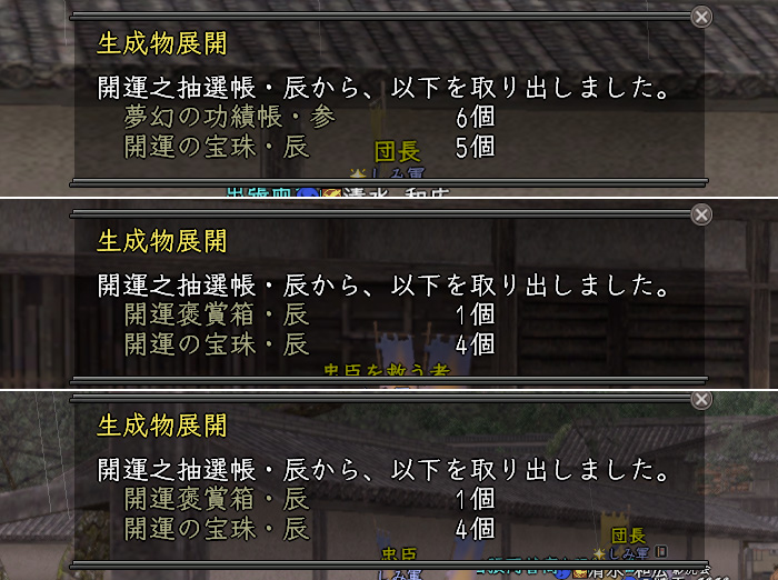 | 1週 | 強化源箱・辰 | 開運褒賞箱・辰 | 装飾石箱・参 | 1/1 |