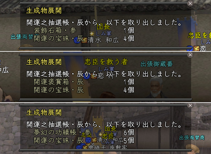 | 1週 | 強化源箱・辰 | 開運褒賞箱・辰 | 装飾石箱・参 | 1/1 |