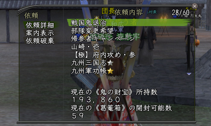 この探訪では〝鬼の財宝箱〟ってのが手に入るんですけど、「戦国鬼退治」イベントを受諾せずに使っちゃうと〝英傑見聞〟ポイントになっちゃう(らしい)のでご注意ください。倉庫キャラ、休止垢でも必ず受諾すること!