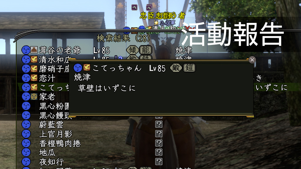 ハロ二チワ。昨日はアピールのおかげでめいちゃんと一緒でした(笑)最近色々な方と徒党ができてなんだか懐かしい感じです。知人の知人とか数少ないので非常に新鮮でいい感じです。今日九十九金銀札の整理もできたので夜合戦に少しおじゃまして明日は朝早くから夜まで出張になるので探訪やってメンテをむかえたいと思います。今週宝の箱久々にゲットして陣法いじれるとうきうきしてたら中身爆死で延期です。今週出たので次週は宝またでるはずなのでがんばります。