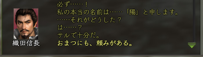 間者が「本当の名前を伝える」という熱い想いを分かってもらえずに、信長にスルーされる現実。