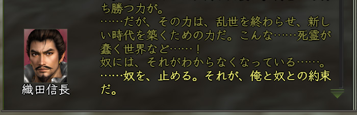 信長は「死霊の蠢く世界、ダメ絶対。絶、止める。手伝え」ってことで秀吉の引き止めに成功。