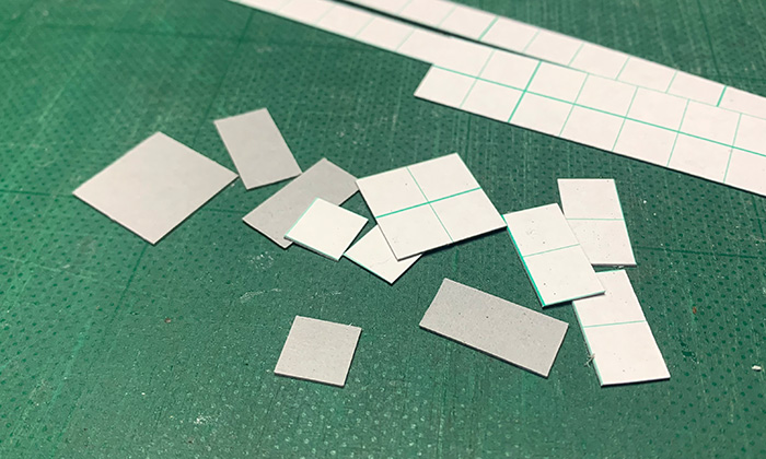 お手本サイトと同じように3種類のパーツ(20×20mm、20×10mm、10×10mm)に切り分け。