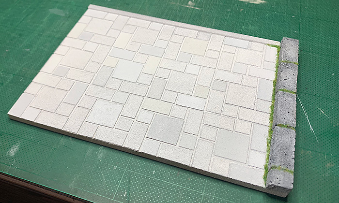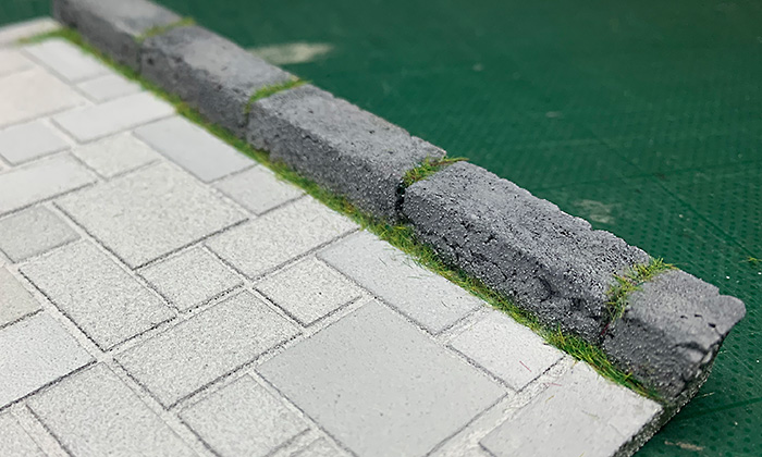 そんでもって、縁石周りの目地部分に緑のパウダーを少し振りかけてなんとなく完成〜。