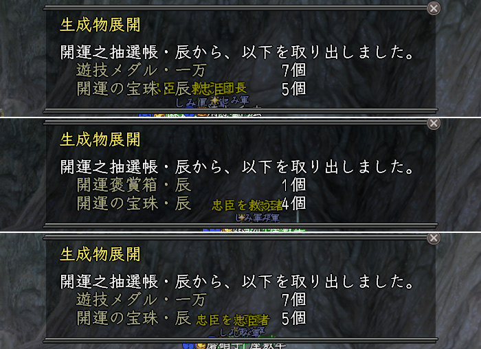 | 1週 | 強化源箱・辰 | 開運褒賞箱・辰 | 装飾石箱・参 | 1/1 |