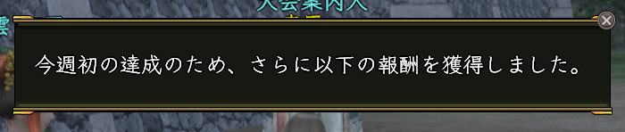 続いて、先週余分にやってた〝天下武技大会・天〟の報酬(メインキャラ分)を受け取ります。
