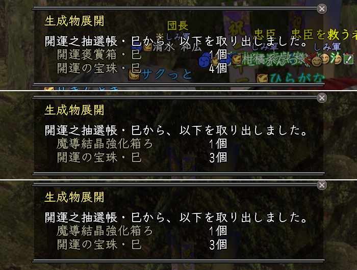 で、しばらく虫退治に精を出してたら、おてぇさんから「開運帳、あけるべし」との注意喚起。