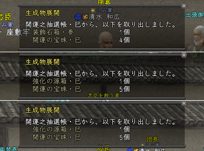 | 4週 | 装飾石箱・参 | 開運褒賞箱・巳 | 遊戯メダル・一万 | 1/16 |