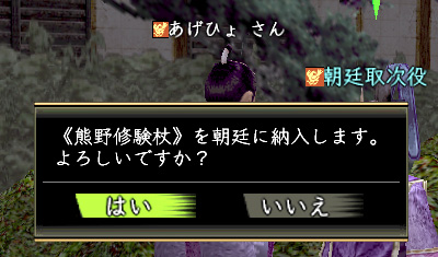 陰陽の目付試験は、昇仙峡の陰陽師を倒して鬼紋とかいうアイテムをゲットする内容。