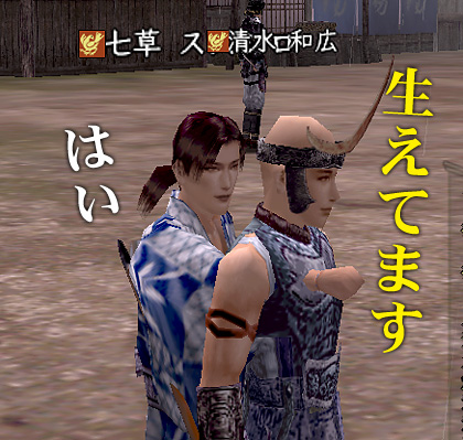 斎藤さんが無事57になったとか、清水を60にすべく屋敷ソロしてたら必ず邪魔されるとか・・・・・。あ、そうそう。伊達さんの巫女の笛取りお手伝いに越中へ行きました。うん。これも屋敷ソロしようと丹を飲んで2戦目でお誘いがかかりました。