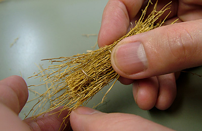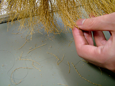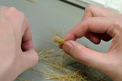 同じくダイソーで買った麻ひもを分解して、それでくくって、瞬間接着剤で止めて