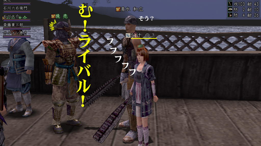 ちょっと話していると、堂さんが落ちようとしているジョンくんを発見。合戦場で発揮できなかった変態プレーでジョンくんをいじめて盛り上がり始めたところで、清水は勝手に紀伊へ帰宅。