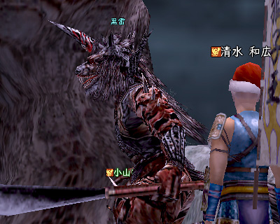 ところがギッチョン、この人、結構強いです。適当装備ではなんともなりませんでした。とのが倒れ、はーるが倒れ、結局ははーるの巫女以外が全滅。その巫女も、帰る途中で何かに絡まれて死亡。ちくちょー!そのうち、リベンジしてやるぜ!