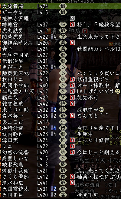 かといって、元々は雑賀の人ですので、足利の人と仲良くしちゃうと「あ、スパイだ!」とかって思われるんじゃないかと疑心暗鬼になり、とりあえずレベル10迄はソロでネズミ。さすがに限界がきたので、みんなに手伝ってもらって修得をしていたわけです。