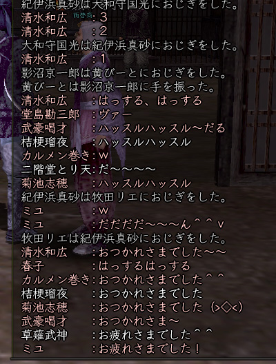 ちなみに、ビター羊羹ってのは、知る人ぞ知る「堂島勘三郎(いわゆる堂さん)」、剛力鰯ってのがこれまた知る人ぞ知る「びびつとむ(いわゆるびびさん)」の別キャラです。ミユは、まぁ、ミユです。