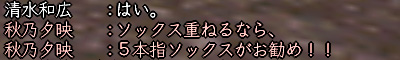 - とはいうものの、この日の小松さん、恐らくみんな初めてだったのかな?内容が変態すぎたのか、話に全然絡んできてくれませんでした。一瞬、パチンコと煙草の話題に乗ってきてくれたんですけど、一行で終わってしまいました。もう少し清水が配慮しなきゃいけないなぁっと思いつつも、会話の流れが止まらない徒党。まぁ、それはそれでイイと思います。次回、小松さんと組むことがあれば、もう少し話の幅を広げてみたいと思います。【↑戻る】