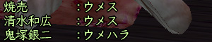 「ウメス」ってのもゲドさんが最初に言ってますねぇ。これはログ内で「変な行動をしたときはウメスだ」って清水が言ってます。そういう流れだったんでしょうね、会話。