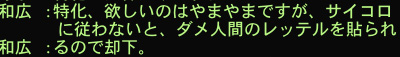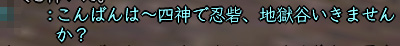 両替やら名主んとこは、人が多すぎてカクカクするもんですから、しょうがないので里のすみっこでコソコソとマクロの練習をしておりますと、バイトから「今、インしてる?」メール。新鯖のキャラ名を伝えて合流して、