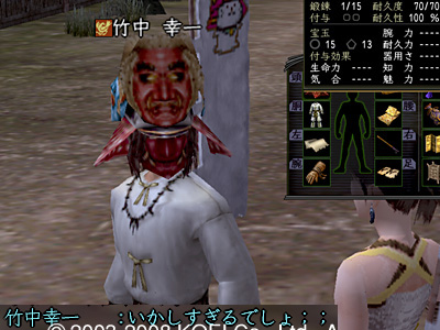 もちろん、彼は生産ばっかしているわけではありません。プレイヤーとしても一流です(って、ゲームで「一流」って言われても、うれしいかどうかはわからない)。自身の装備もものごっついものを使っており、先日、一緒にTD行った際には「ぶちかまし・改」で1200以上だしてました(もちろん、極みはしてない)。