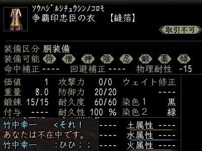 争覇が始まってすぐ、争覇生産品の鎧をいただきました。