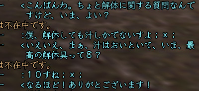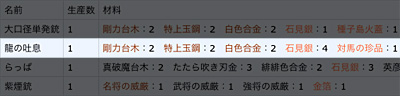 材料がそんなにありませんので、あとは解体作業を繰り返しての生産になりそうです。ふむふむ。解体具は8が価値21か・・・。龍の吐息が価値21ですのでちょうどいいね。