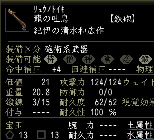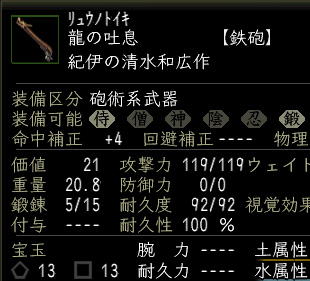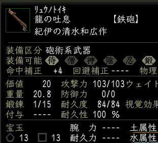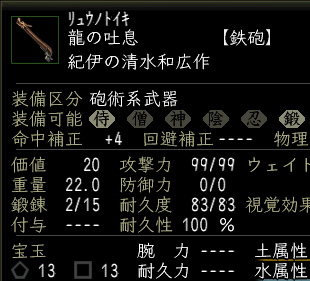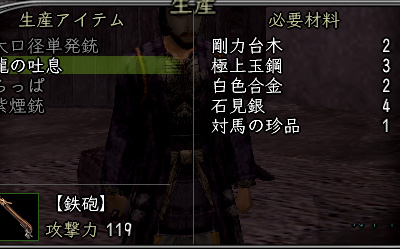 清水の九州友好度は5000に達してませんので、鋳鉄之書・拾までの生産品。今回は単発銃を作ろうと思ってましたので「龍の吐息」ってのにします。製品発表で公開されていた龍の口の太い銃です。