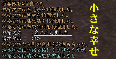 知行生産品を揃えたあと、郷で生産装備をしていた林さんを捕まえて剛力台木の生産依頼。
