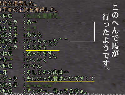 で、この日、ぬまんの友好度を貯めるべくの耳1ノックでした。何回目かの戦闘後、「鹿児島城へ帰りますか?」の選択の際、ついつい馬が行っちゃったミスの話。取り残されたのはアンジーとマッキー。