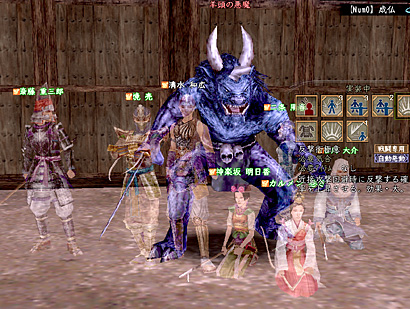 メンバーは市に参加してた斎藤さん(侍)、ちゅーさん(忍)、カル(神)、終了後暇そうにしてたにじょさん(忍)、飯落ちから呼び出された明日香(薬)、そして石川さん(僧)、清水(鍛冶)。