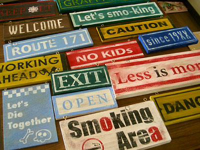 さて、これまたどうでもいい話ですが、最近のリアル清水の個人的な趣味として、ステンシルを使った木製看板を作ってます。そしてエイジングなどを施して、レトロ調に。