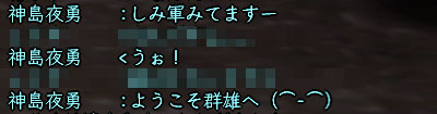 いあいあ、まっさか群雄鯖にしみ軍ユーザがいるとは思ってもおりませんでした。かなり感激でございます。