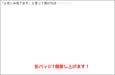キミら、これ、6月13日・14日に名古屋で行われたイベントに来てくれた人で「とほしみ見てる!」って言ってくれた人に缶バッジをあげるって企画だよ!