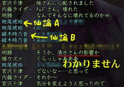 中の人はともかく、女性キャラの仙論が多いのでとりあえず出した。デヘヘ。