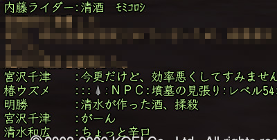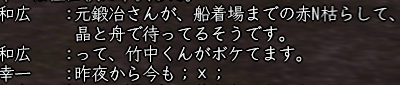 まぁ、「適当に雑魚でも」って感じで、住田さん、元鍛冶さん、中里さん、琥珀さん、まっきー、ぬまんな身内徒党だったので問題はなかったんですが、「船着き場(3に行くところ)の雑魚でもやっつけながら住田さんを待っておこう」ってことで、清水の検索コメントを「スミタさん、船着き場」として、そのへんの雑魚狩り。