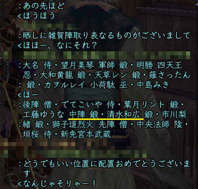 なんて言いますか、ボク以外の人は全員、合戦等で活躍されてる方ばかりだと思いますが、ボクは合戦にほとんど行きませんので、何故ここに掲載されたのが全然わかりません。