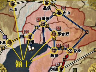 つまり、毎回の合戦でこの領土を奪っていき、国にある領土を全て奪った時点でその国が自国領となる感じなのかな。