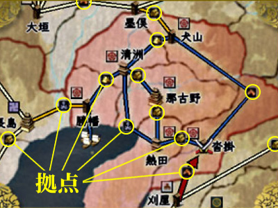 「拠点」というのは領土と領土の間にある土地で、拠点戦で勝利して軍事物資を蓄積し、その軍事物資を使って外交を行い合戦が発生する仕組みのようです。