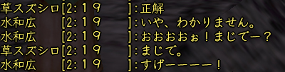 倉庫で眠ってた修得の書を使ってとりあえず土竜攻め(鉄砲の新技能ね)を修得したはいいものの、命中率が大変悪く、人並みに徒党会話で愚痴ったところ、いや実は土竜が悪いのではなく清水が悪いのでは?という話になりました。