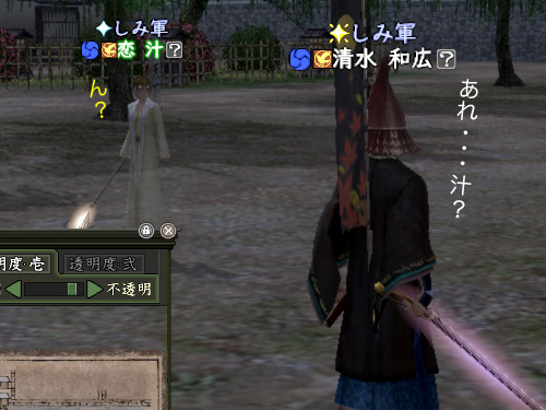 すべてのPC&NPCのアバターはデフォでこの「もんぺスタイル」なんです。普段だと処理速度的に問題なくて一瞬で切り替わるんだけど、今回ウィンドウのデザインを変更したことで通常よりも若干処理速度に遅れが生じて、本来の姿を垣間見ることができた。