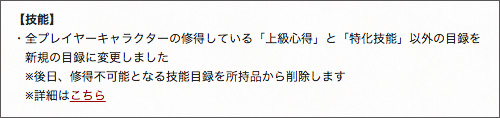 いやぁ、勇士の目録は修得なかったんで「もしかして」とは思ってましたが、まさか本当に修得がなくなるとは・・・。