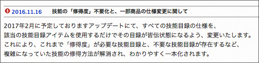 恐らく全体的にみると良いことなんだろうけど、あの「あと1戦で皆伝!」とか、「もう少しで修得できるしちょっと戦闘付き合って」とかっていう一喜一憂がなくなるのかと思うと少し寂しい気もしますね。