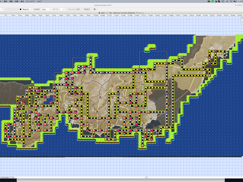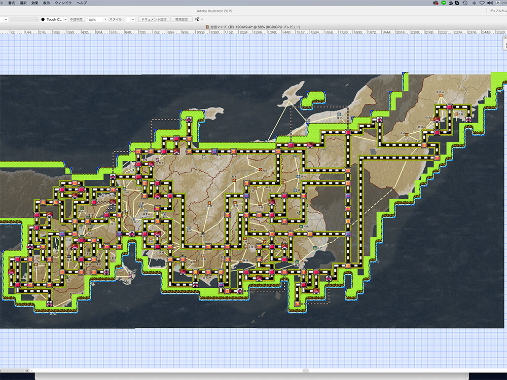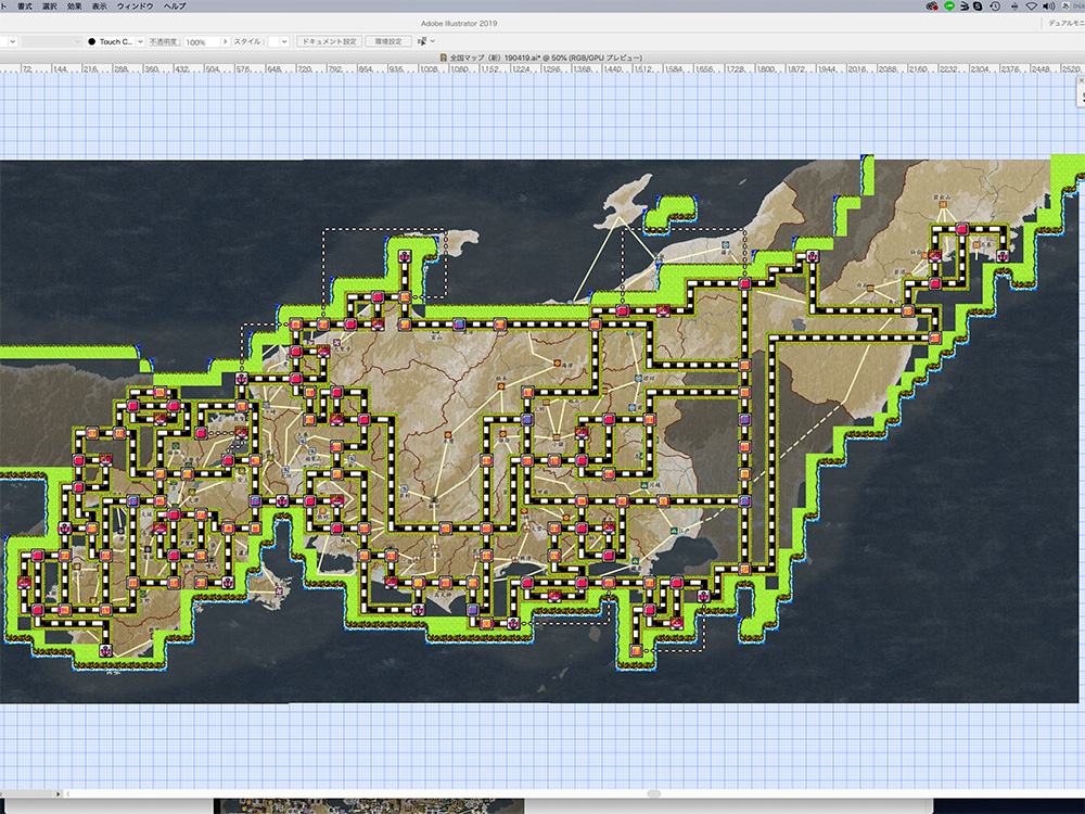 大まかな路線図が決まりましたので、本州の形を作ります。