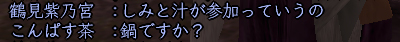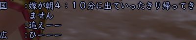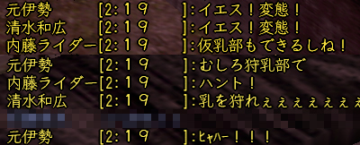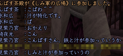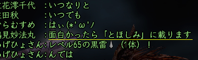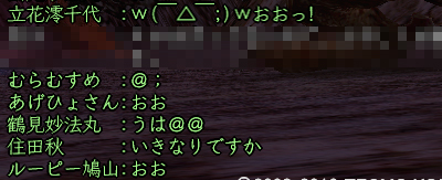 たまたま昼間にインした、10月前半の祝日のこと、ちゅさんと一緒に人ptしてるときの一門私設での会話です。