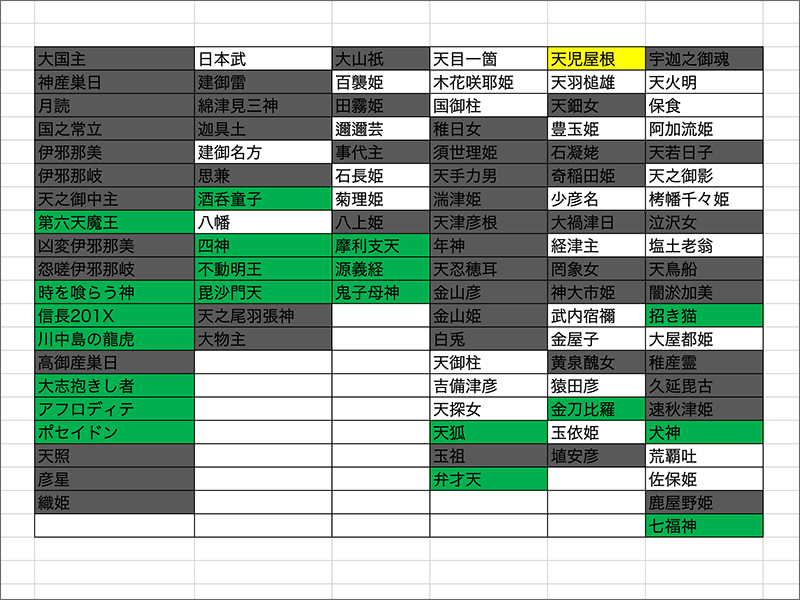 読み進めたところまでで「登場した軍神」「残ってる軍神」「登場しない軍神」はこんな感じ。